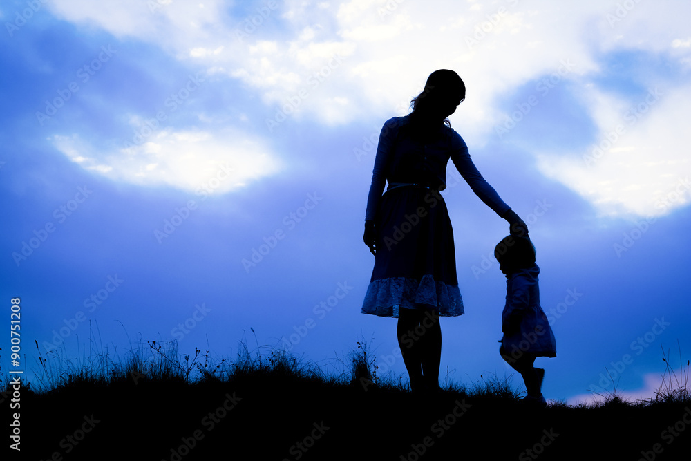 happy parent with child in the park outdoors silhouette