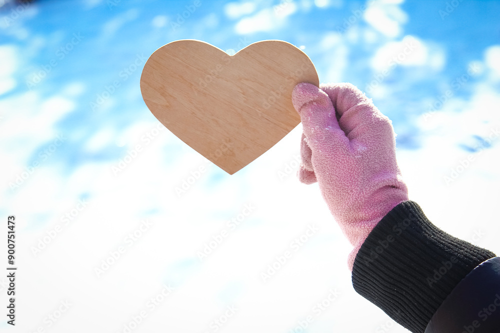A Heart in the hands of a girl against the sky Valentine's day in a park in nature