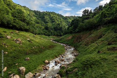 Aerial view of Khao Chong Lom is a natural famous tourist attraction located in Khun Dan Prakan Chon Dam. Nakhon Nayok Province, Thailand.