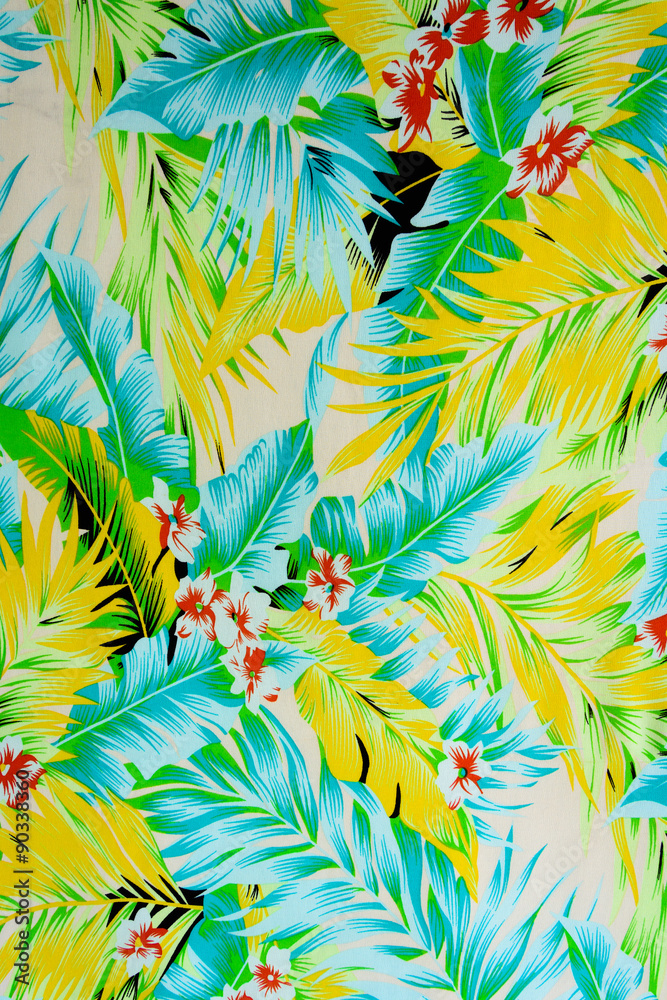 texture fabric Vintage Hawaiian flowers and leaves for backgroun