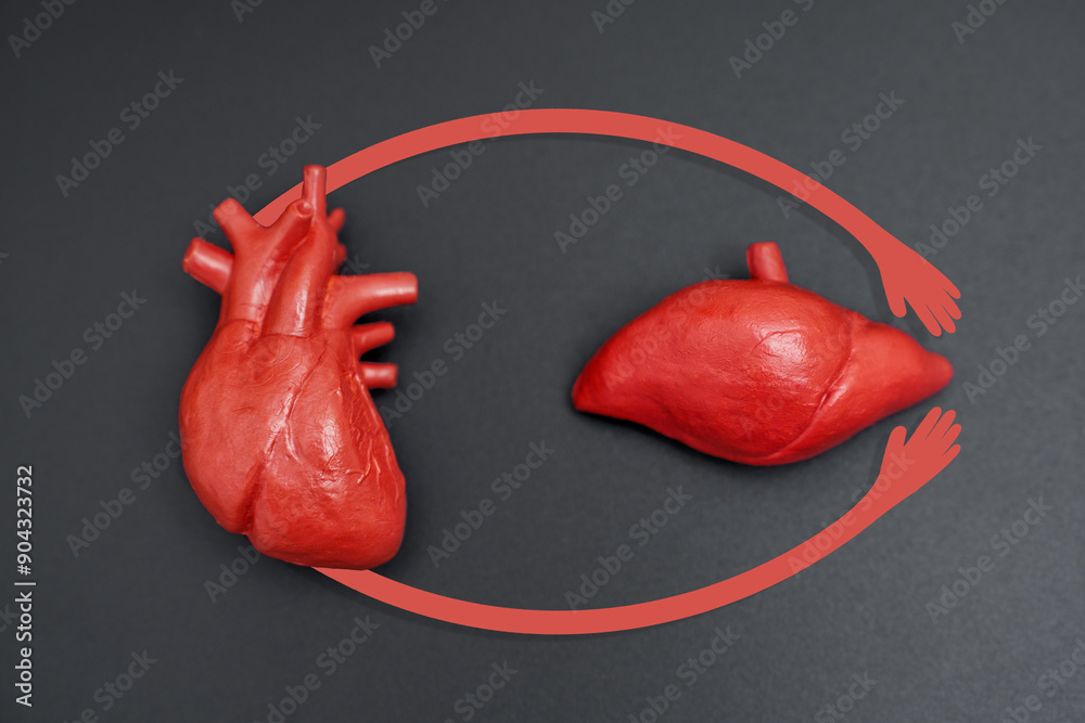 Heart And Liver Models Highlighting Their Anatomical Relation