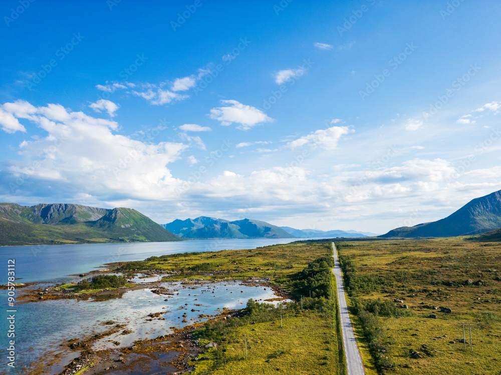 Andoy, or Andoya, summer landscape in Norway. Aerial view of Andoya, Nordland, Norway