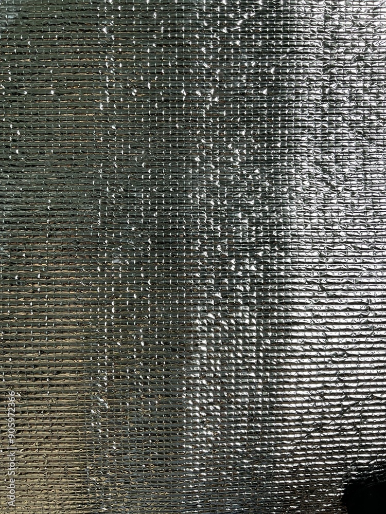 Aluminum foil reflects sunlight, shiny and glossy. Use it as a background to put text.