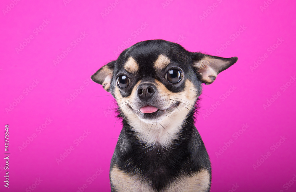 Beautiful chihuahua dog. Animal portrait. Stylish photo. Pink background. Collection of funny animals