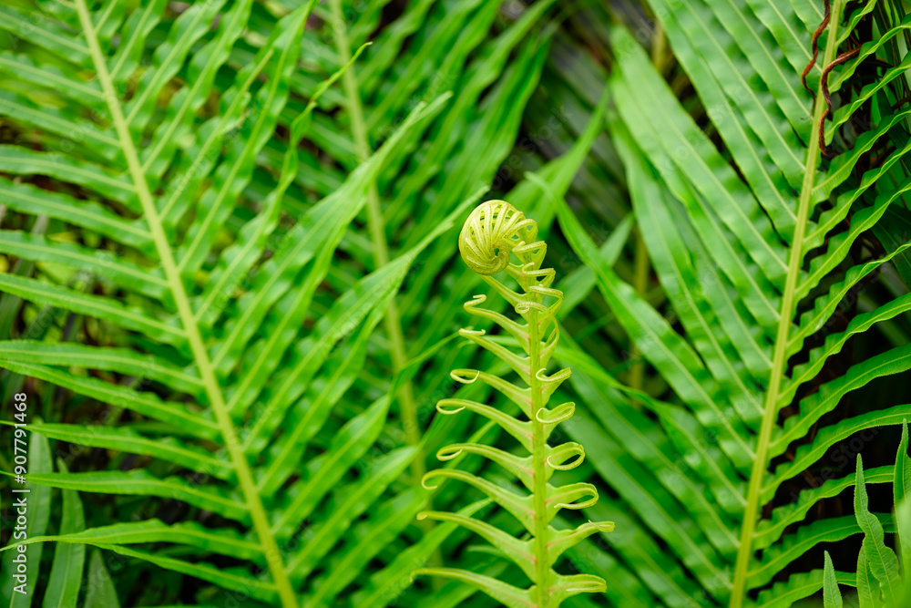 blechnum hard fern frond, green leaf leaves botany botanical, background texture, curl furled unfurl, tropical garden gardening environment ecosystem, landscape design