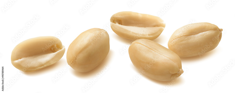 Peanuts, whole and half nuts, isolated on white background. Long horizontal layout