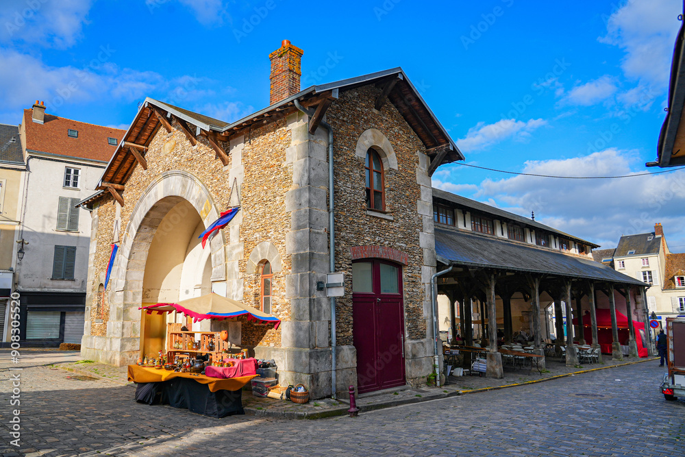 Market Hall of Dourdan, a medieval town in the French department of Essonne in Paris Region