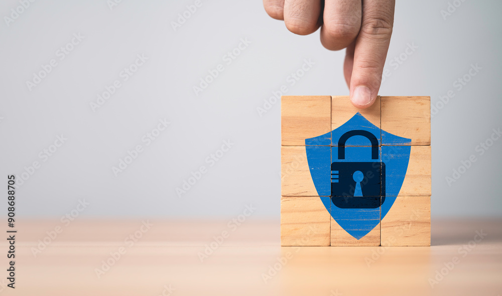 Hand assemble master key lock with guard icon for Personal Data Protection Act or PDPA and cyber privacy security information concept.
