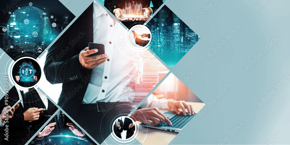 Communication technology , smart connection IOT and people network technology concept. People using connective device to connect to the secured internet network and cloud computing server kudos