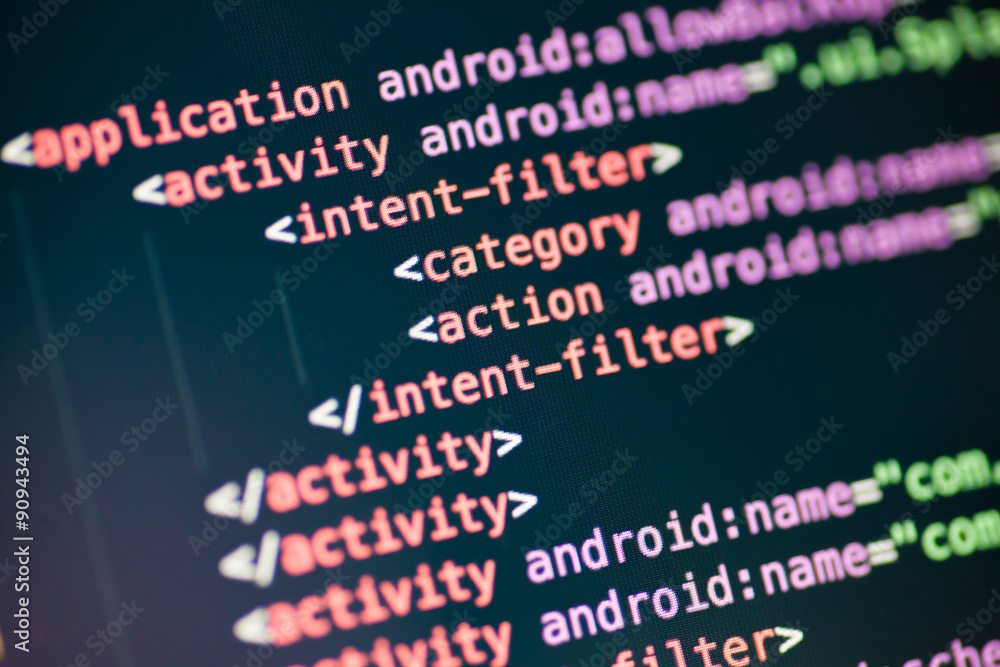 XML code lines on a display