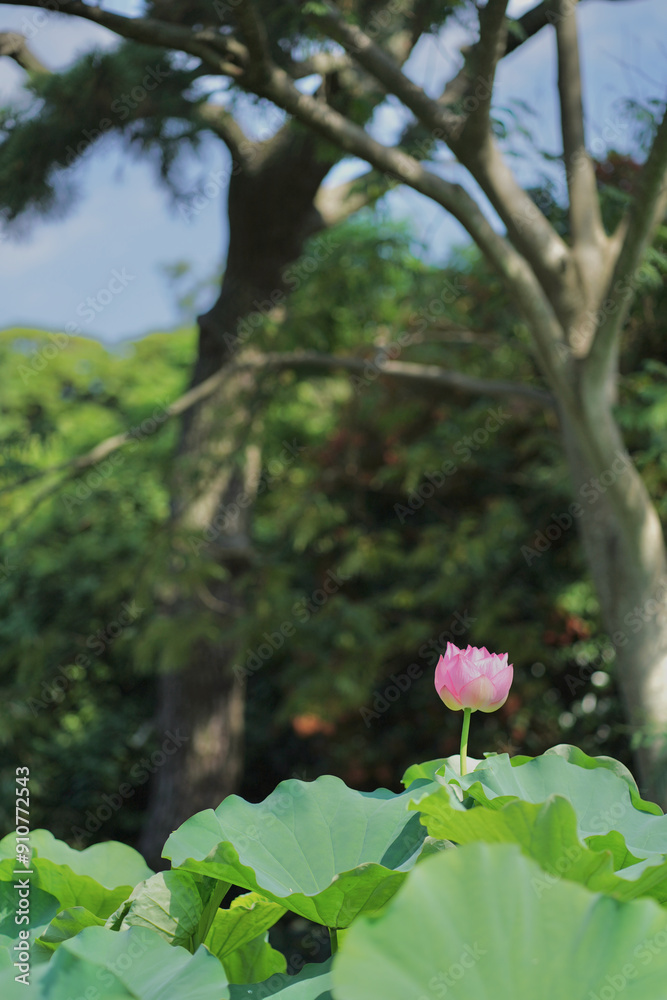日本、神奈川県、横浜市本牧の日本庭園の蓮の花 2024年8月