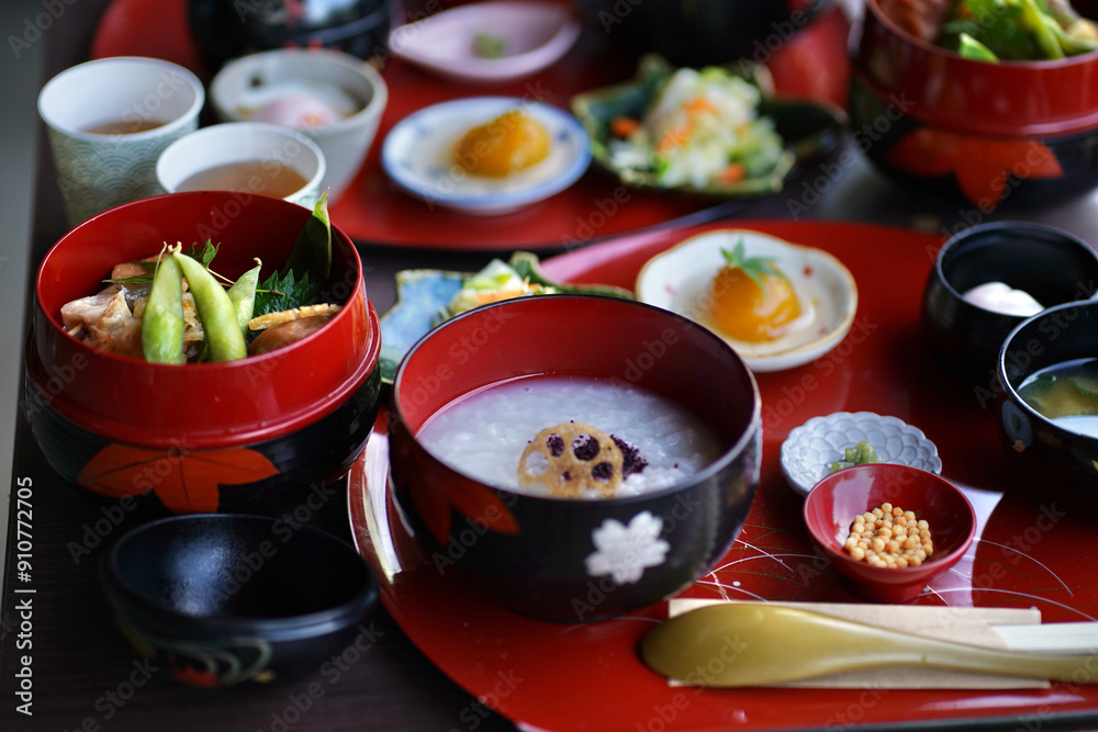 日本、神奈川県、横浜市本牧の日本庭園内のレストランのおかゆ