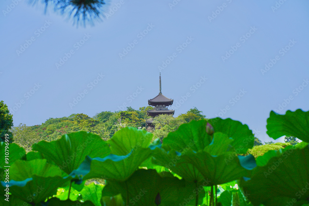 日本、神奈川県、横浜市本牧の日本庭園の蓮の花 2024年8月