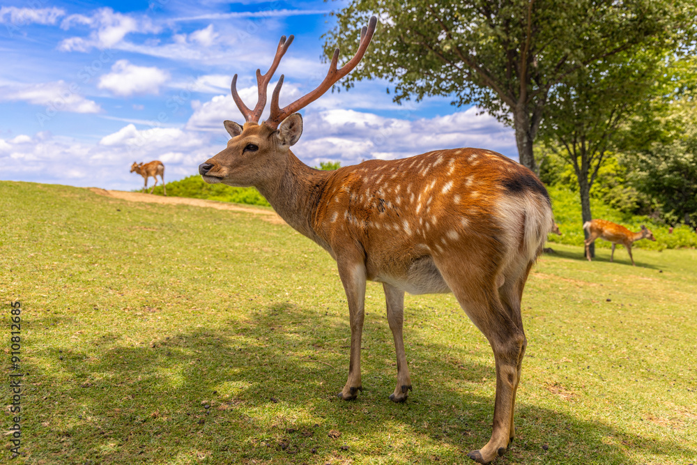 The deer are freely roaming around in Nara park, Japan