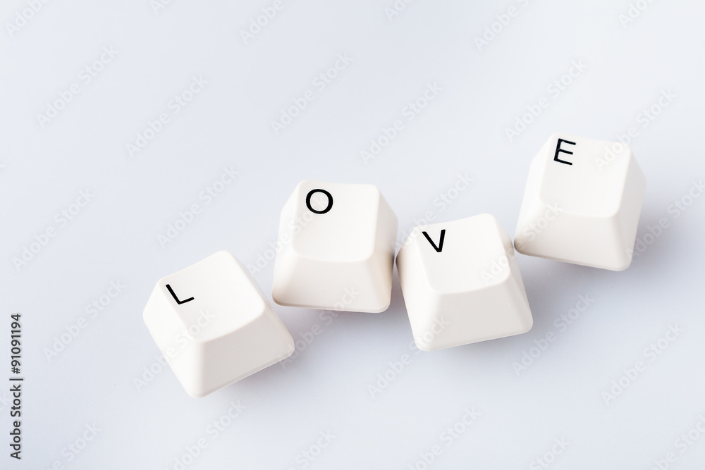 Word LOVE on computer keyboard's buttons. May be used as symbol