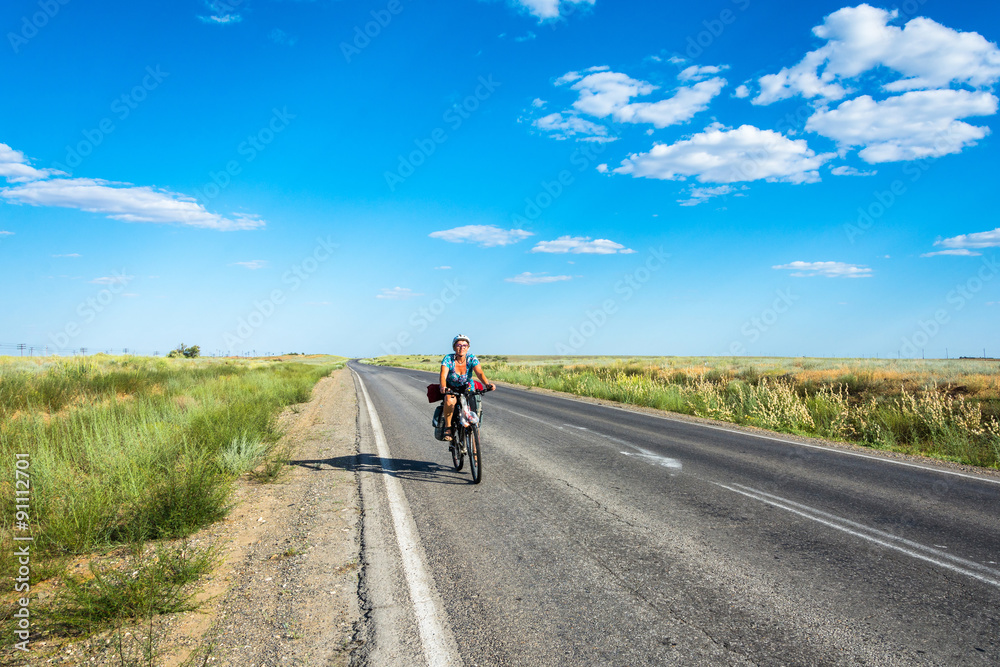 The Bicycle rider on the road.