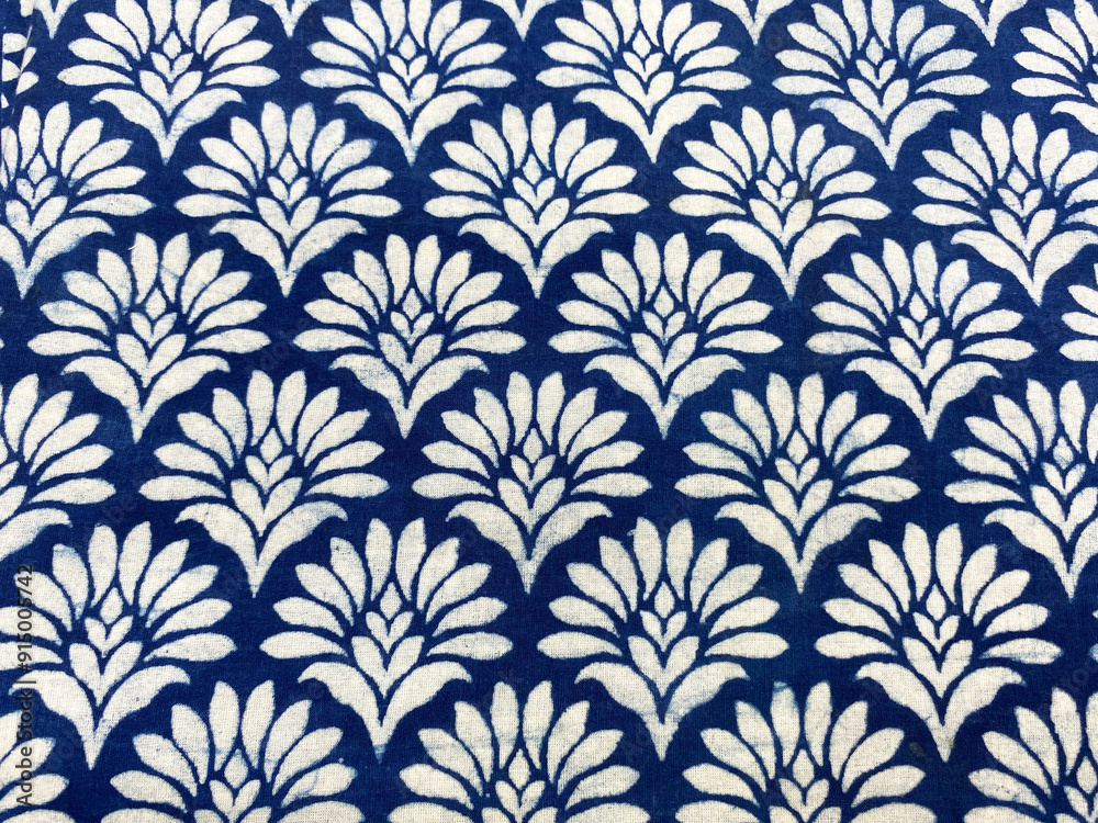 Traditional floral design in indigo block printed fabric of india, dabu print of jaipur