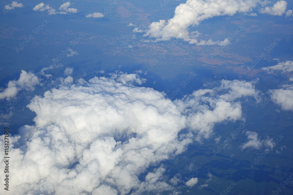 Palm trees on a beautiful sunny summer afternoon in Hollywood Beach near Miami Florida with ocean and blue sky in the background