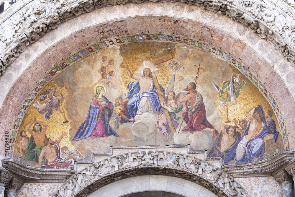 "Resurrection of Christos", mosaic on the front of St. Mark's Ba
