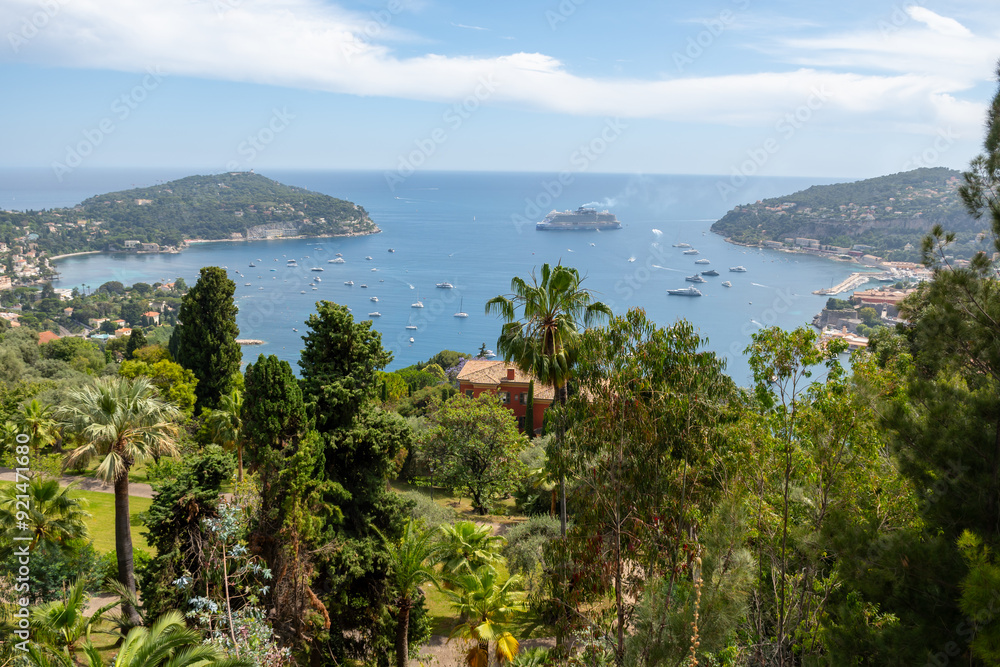 Panoramic view of Saint-Jean-Cap-Ferrat commune in Alpes-Maritimes in Provence-Alpes-Cote d'Azur, French Riviera, France
