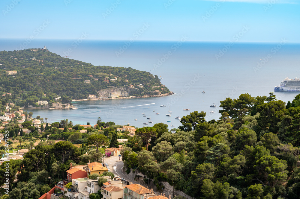 Panoramic view of Saint-Jean-Cap-Ferrat commune in Alpes-Maritimes in Provence-Alpes-Cote d'Azur, French Riviera, France