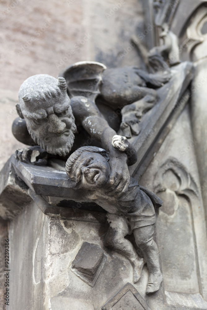 Скульптура чёрта забирающего врунишку. Нюрнберг. Германия.