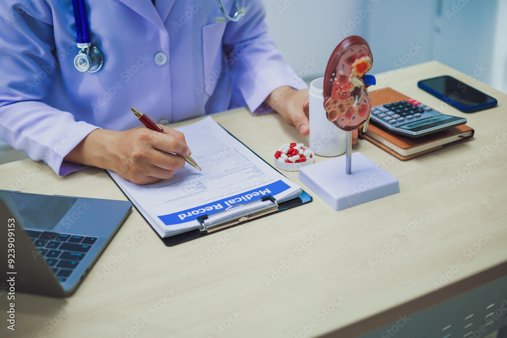 About Kidney Health Close-up of an anatomical model of a human kidney on a doctor's table in the urology department.