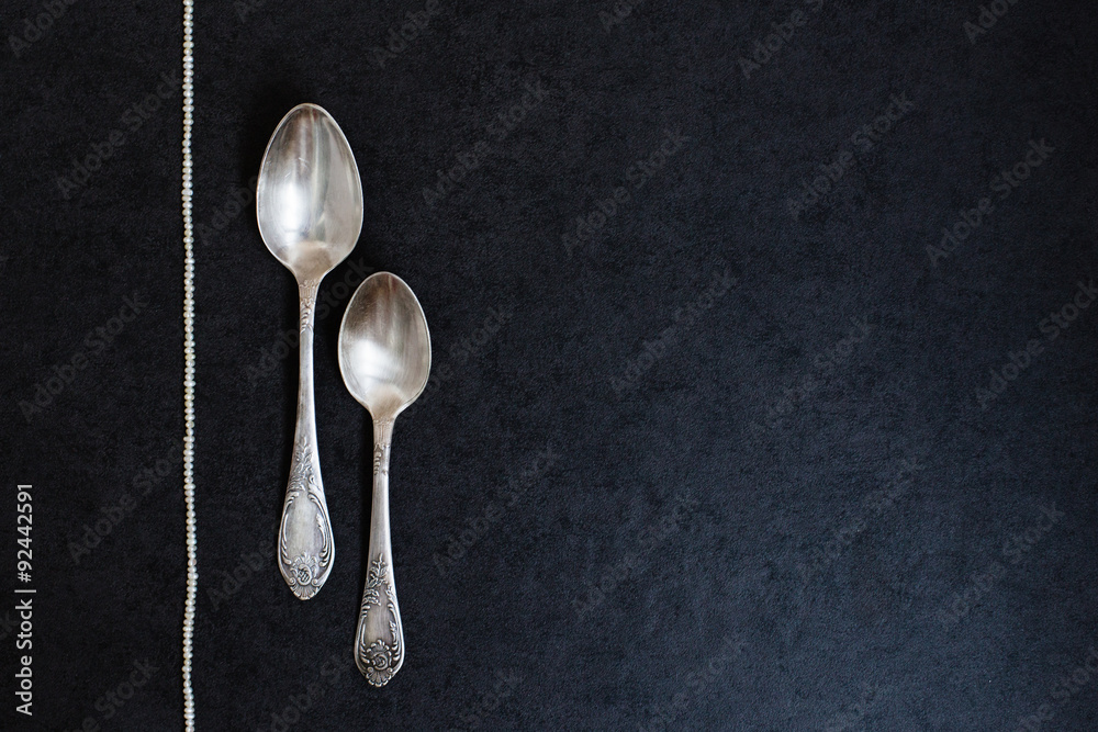 Two silver spoons with pearls