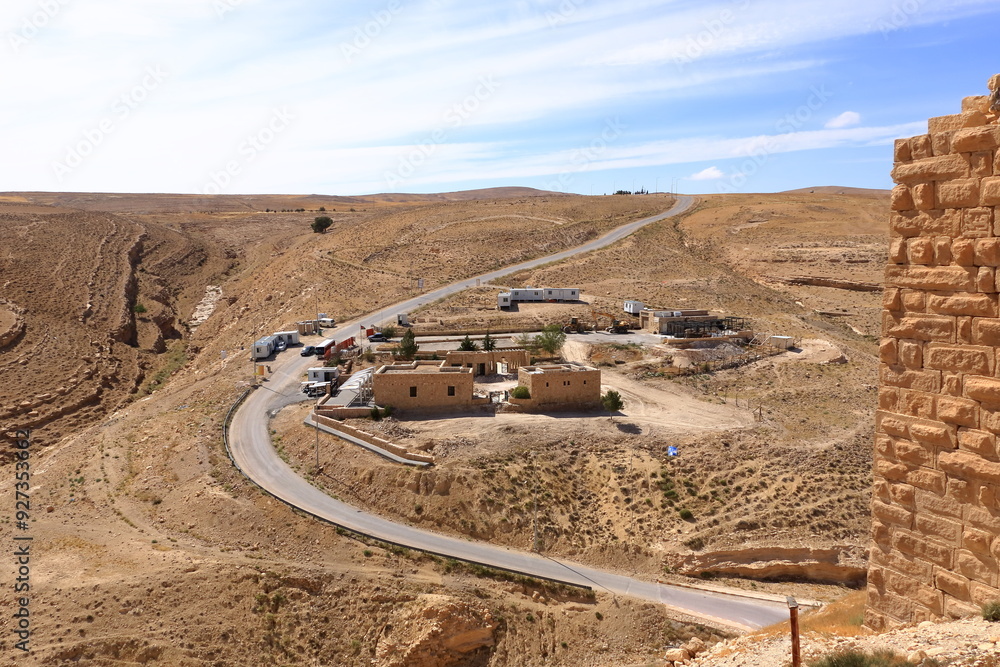 Panoramic view at the nature near ruins of Shobak castle and the city of Montreal in Jordan