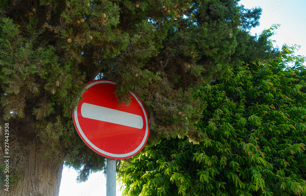 no entry sign Under a tree in the countryside