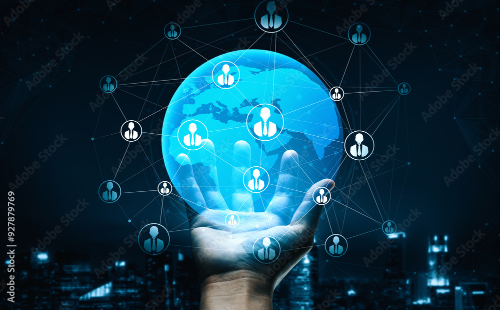 People network and global communication concept. Business people with modern interface of community linking many people around world by social media platform to connect international business. uds