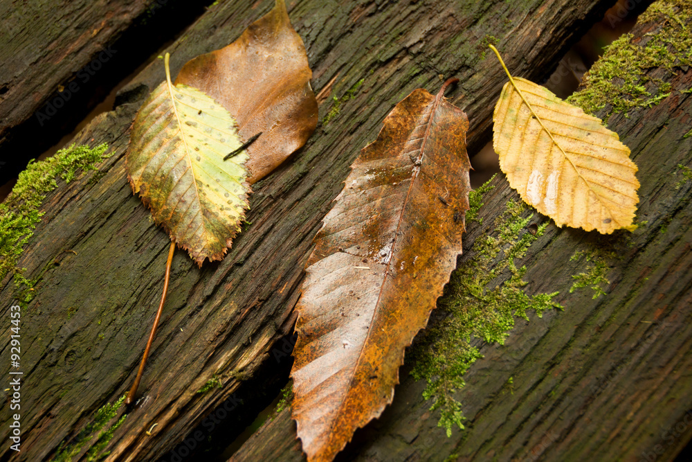 Dead leaves on bench