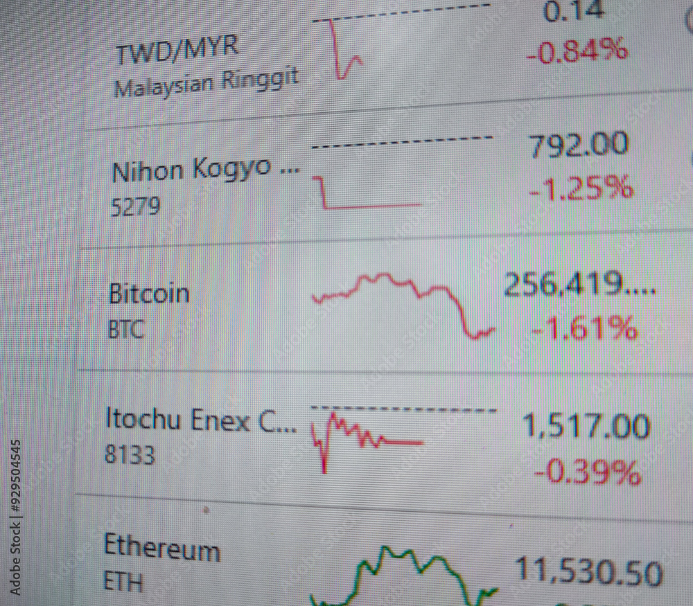 Image of a computer screen showing the latest graphs of various foreign currencies