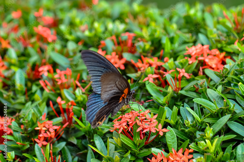 Papilio protenor sits on a flower. Macro photo of a butterfly