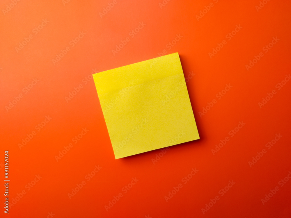 Top view blank yellow sticky note on a orange background