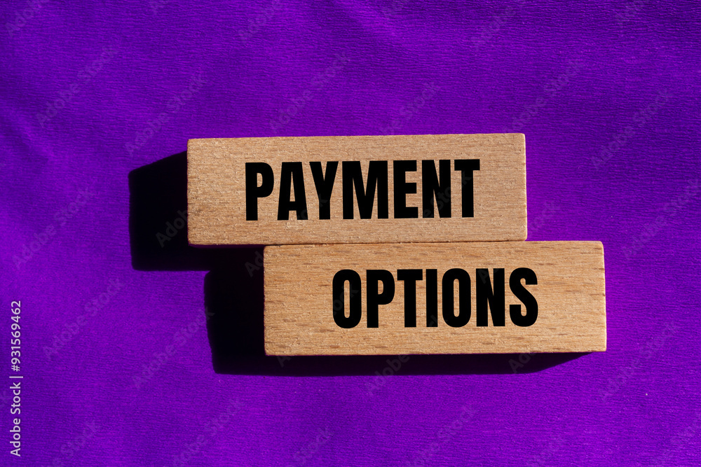 Payment options message written on wooden blocks with purple background. Conceptual payment options symbol. Copy space.