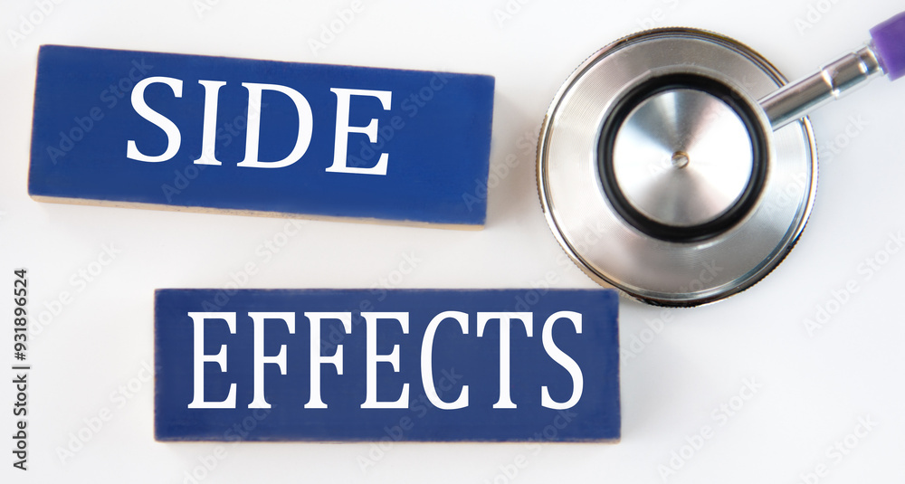 SIDE EFFECTS - words on blue wooden blocks on white background with stethoscope