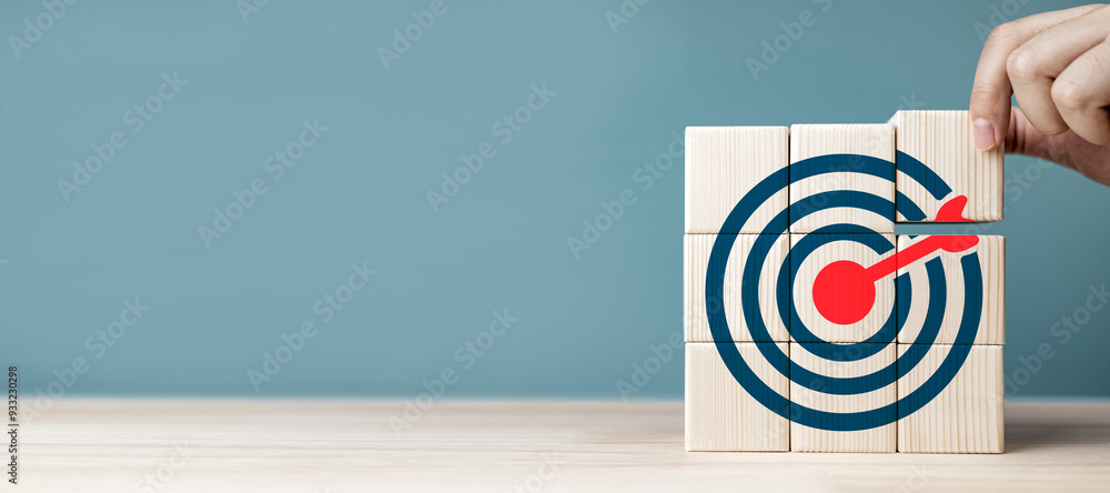 Goals and strategic planning for success. Target board on cube wood. with copy space