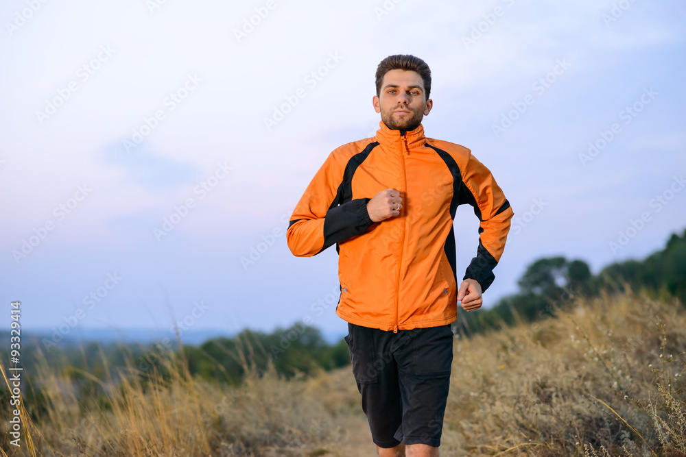 Young Man Running Outdoor on the Trail in the Park. Active Lifestyle