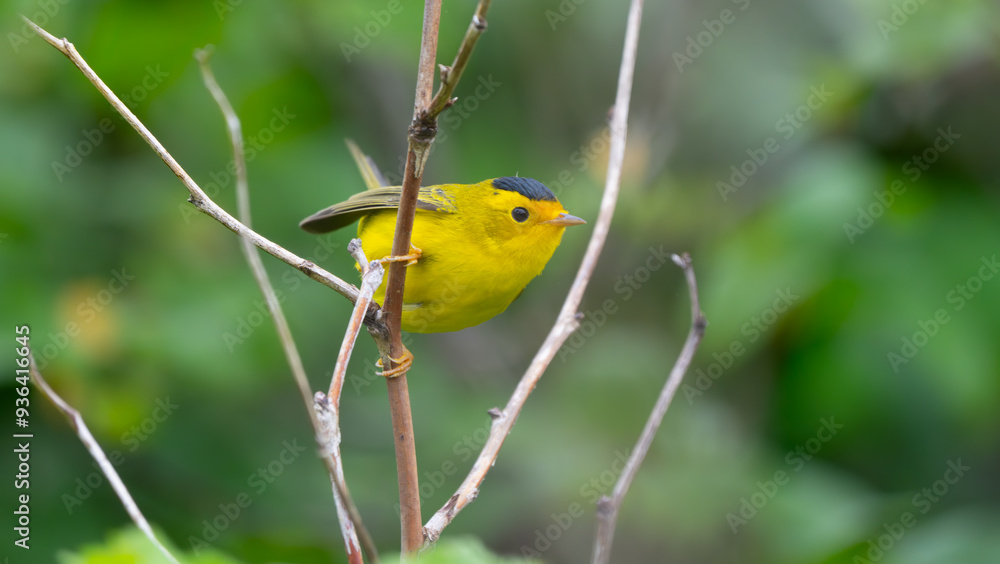 Wilson's Warbler Peeks Shyly From Behind Branches