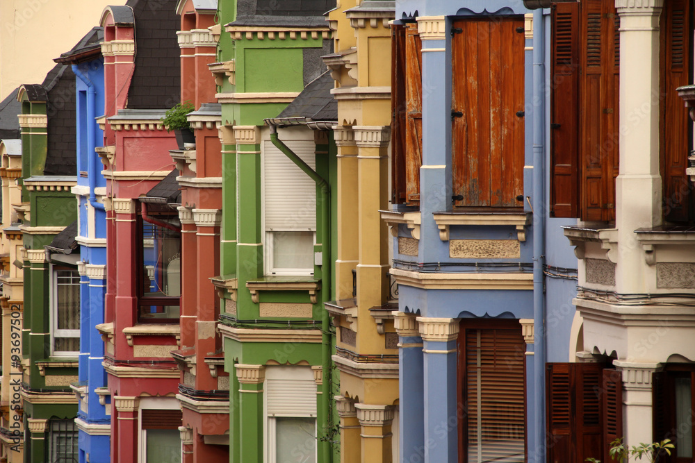 Casas de colores de estilo inglés en un barrio de la ciudad de Bilbao, España
