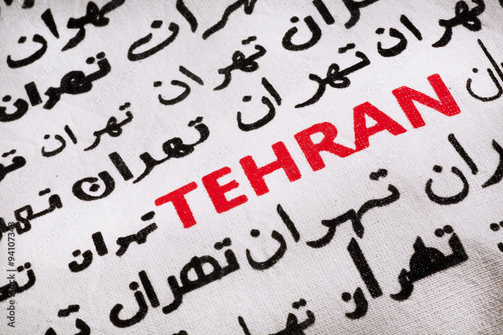 Selective focus on the word Tehran, in Farsi and English