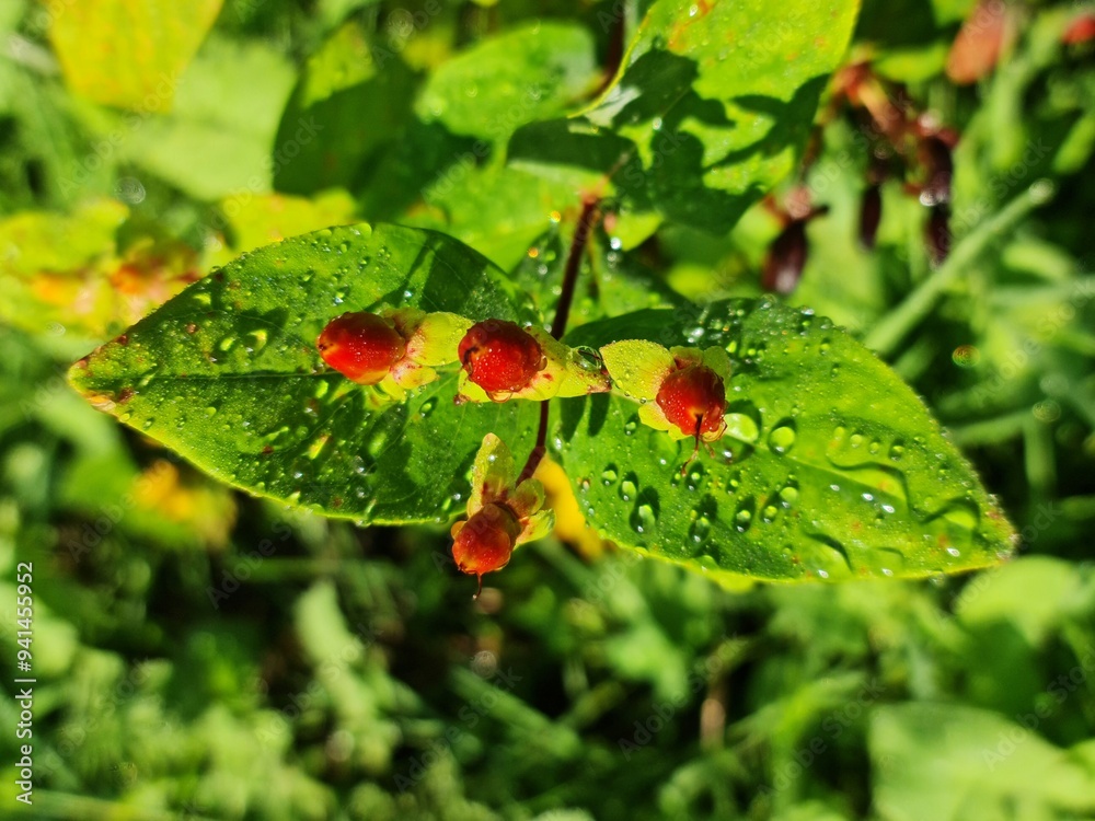 red buds with water drops Hypericum perforatum
