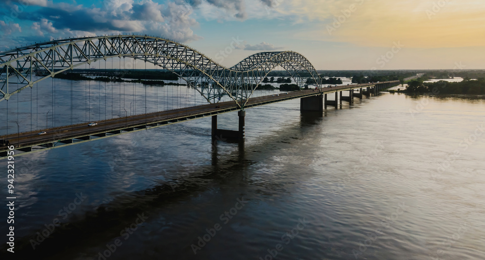 Hernando de Soto Bridge over the Mississippi River Memphis. It separates Tennessee from Arkansas, United States of America.