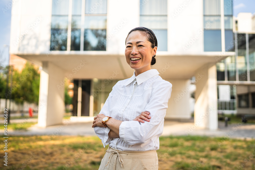 Portrait of japanese business woman stan in front the modern buildings