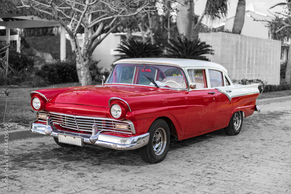red and white classic car in the streets of havanna cuba