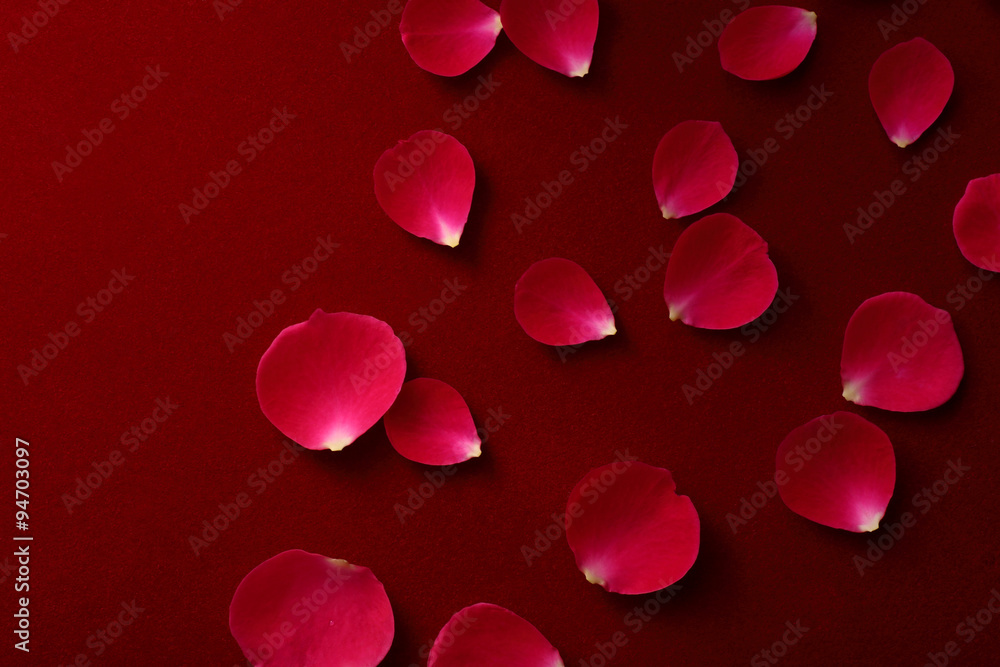 赤い背景にバラの花びら