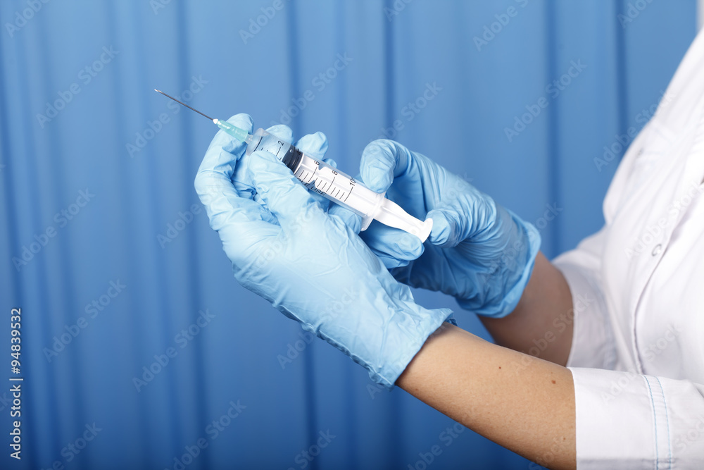medicine and health, doctor holding a syringe close-up