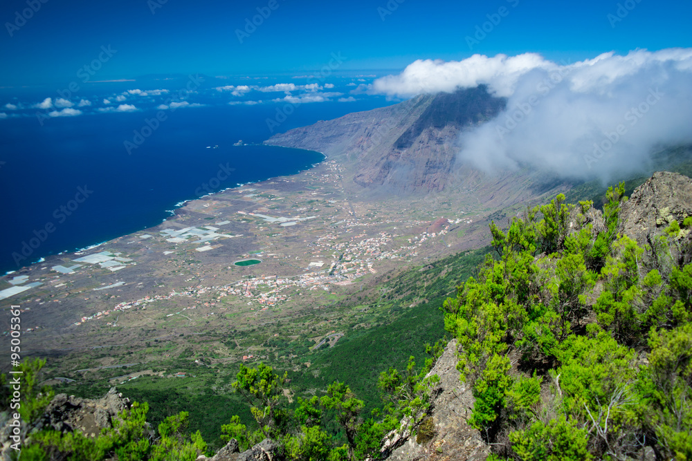 View into Valley of "El Golfo" from "Cruz de los Reyes" at El Hierro, Canary Islands