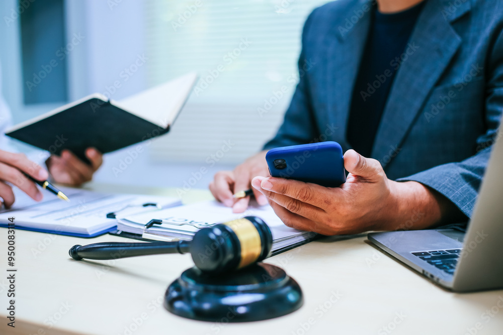 Two lawyers consult in a modern office, presenting compelling arguments and demonstrating their expertise, trying to win a case with their legal acumen and persuasive skills.